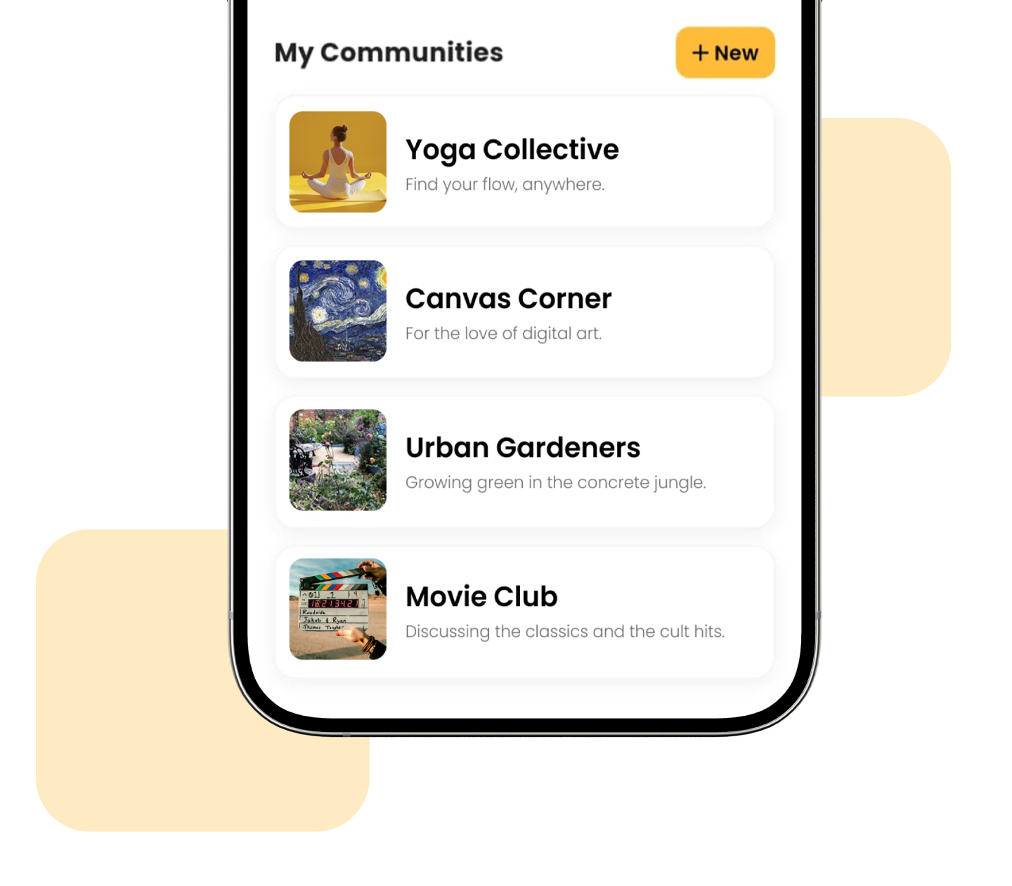 See what's happening in your neighborhood at a glance. Find workshops and meetups quickly so you can spend more time showing up in person.